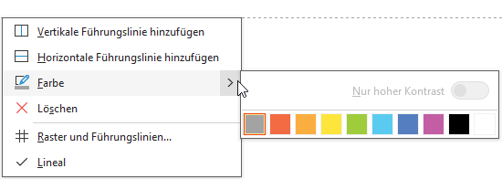 PowerPoint bietet aktuell 9 vordefinierte Farben für Führungslinien.