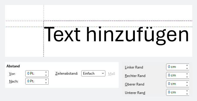 Im Vergleich zu Adobe InDesign ist die Zusammenarbeit von Textfeldern und Führungslinien in PowerPoint eingeschränkt. Problematisch ist vor allem, dass Text nicht exakt an den Feldrändern abschließt (besonders oben/unten) – selbst wenn der Innenabstand 0 cm ist und bei einzeiligem Zeilenabstand.